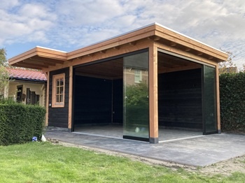 Ja, alle vrijstaande overkappingen zijn modulair opgebouwd. Je kunt later eenvoudig glazen schuifwanden of zijwanden toevoegen.