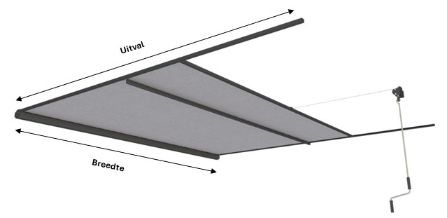 LET OP! Meet altijd de netto dagmaat. Dit is de uitsparing in het dak, de lichtstraat of pergola. Vermelde afmetingen zijn breedte × uitval.