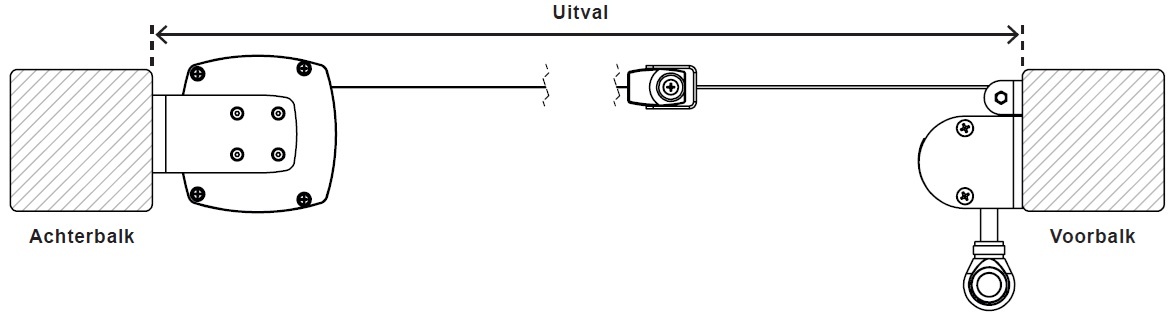 De cassette van de Umbra wordt gemonteerd aan de achterste balk, terwijl het opwindmechanisme aan de voorste balk wordt bevestigd. Voor de uitval meet je de afstand tussen de voorste en achterste balk.