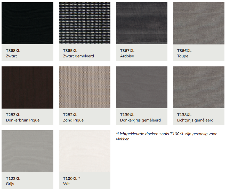 Voor het metaalwerk van de LUXXOUT® producten maken wij gebruik van aluminium, RVS en roestvast stalen bevestigingsmateriaal. Alle onderdelen worden afgewerkt met een hoogwaardige poedercoating. Deze is standaard verkrijgbaar in één kleur: